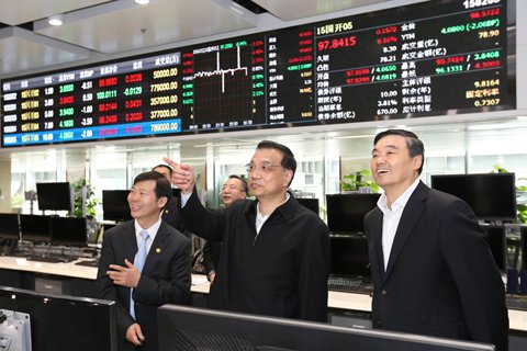 4月17日,中共中央政治局常委、國(guó)務(wù)院總理李克強(qiáng)來到國(guó)家開發(fā)銀行和中國(guó)工商銀行考察并主持召開座談會(huì)。這是李克強(qiáng)考察國(guó)家開發(fā)銀行。圖/新華社