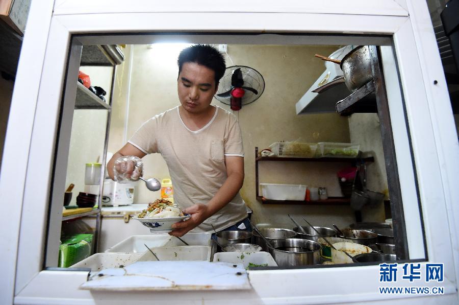 8月6日消息,河南90后小伙付高產(chǎn),在鄭州市中原路伏牛路附近經(jīng)營一家酸辣粉店。今年4月以來,酸辣粉小店門前打出“吃一碗飯救一條命”的標(biāo)語。原來小付同村好友付玉振3歲的兒子付凱文,因患白血病已經(jīng)花光了家中所有積蓄。付高產(chǎn)拿出自己的存款幫忙,但仍差不少治療費(fèi)。于是,小付想用“吃一碗飯救一條命”的辦法來挽救文文的生命。 新華社記者李博 攝 圖片來源:新華網(wǎng)