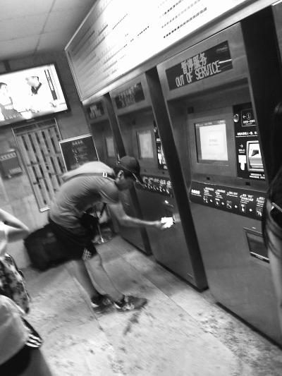 ▲票販子從自動售票機(jī)一次買出很多張票。