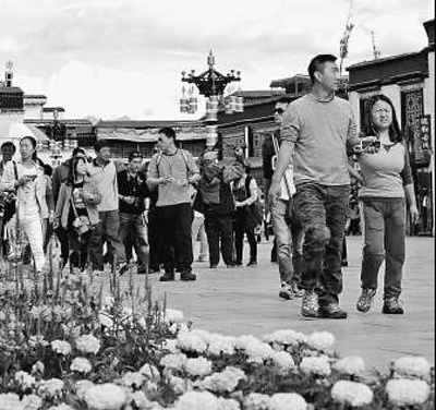 8月19日,大昭寺廣場游人如織。時下是西藏一年中氣候最好的時候,當地旅游接待量也迎來一年中的最高峰。