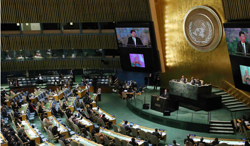 9月26日,國家主席習(xí)近平在紐約聯(lián)合國總部出席聯(lián)合國發(fā)展峰會(huì)并發(fā)表題為《謀共同永續(xù)發(fā)展 做合作共贏伙伴》的重要講話。新華社記者 劉衛(wèi)兵 攝
