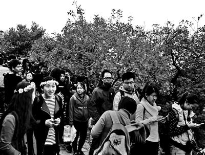 上周末香山公園迎來客流高峰。每天六七萬游客的到來雖然還不至于讓景區(qū)飽和,但香山周邊的交通狀況不容樂觀。昨天下午,北京青年報(bào)記者避開高峰時間前往香山公園,但依舊“一路囧途”,行至最后一公里時交通幾近癱瘓。其中不少游客返程時仍然擠不上車,而“黑車”價(jià)格則高至100元一車。