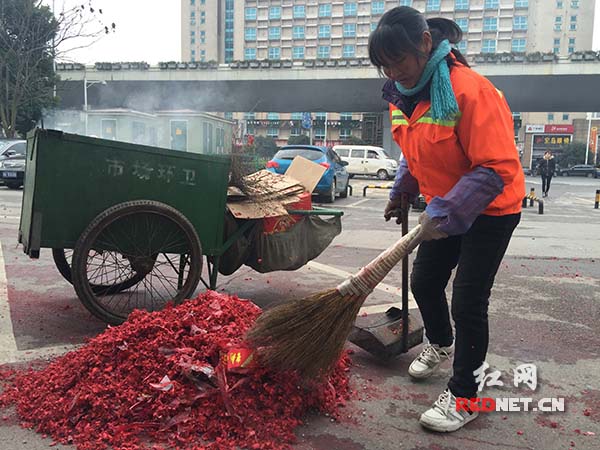 紅網(wǎng)長(zhǎng)沙2月15日訊(時(shí)刻新聞?dòng)浾?李慧)今天是大年初八,是商家的開(kāi)張之日,在這一天很多商家會(huì)燃放鞭炮祈求新的一年生意紅火,而這樣的需求也成為長(zhǎng)沙13789名環(huán)衛(wèi)工人的辛苦日。僅雨花區(qū)高橋片區(qū)的鞭炮紙屑清理點(diǎn)便達(dá)405個(gè),清掃任務(wù)加重。