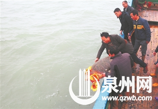 昨日下午3點(diǎn)多,記者隨同李阿尾、惠安縣海洋與漁業(yè)局工作人員搭上小泡沫船,再轉(zhuǎn)乘大漁船離開前峰碼頭。下午3點(diǎn)50分,一行人將海龜抱起,放回大海;莅部h海洋與漁業(yè)局漁政股負(fù)責(zé)人梁偉斌說,在當(dāng)?shù)匾粠ШS虿兜饺绱舜蟮摹疤窖篼慅敗,較為少見。他提醒,漁民誤捕海龜應(yīng)立即將它放回大海,如果對龜?shù)姆N類不明確,應(yīng)及時通知海洋與漁業(yè)等部門前來處理。