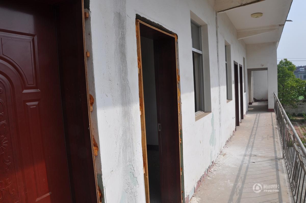 院里雜草叢生,空無一人,兩邊各有一棟兩層樓房,包括廚房和活動室共40間房,房間都鋪了地磚,裝了防盜門和吊扇,可惜的是幾乎所有房間都沒了窗戶,防盜門也是破損的!皬奈醋∵^人,搞糟了!备浇晃环N菜的村民說,敬老院大概三年前建成,花了不少錢,裝修好后就關(guān)了門。