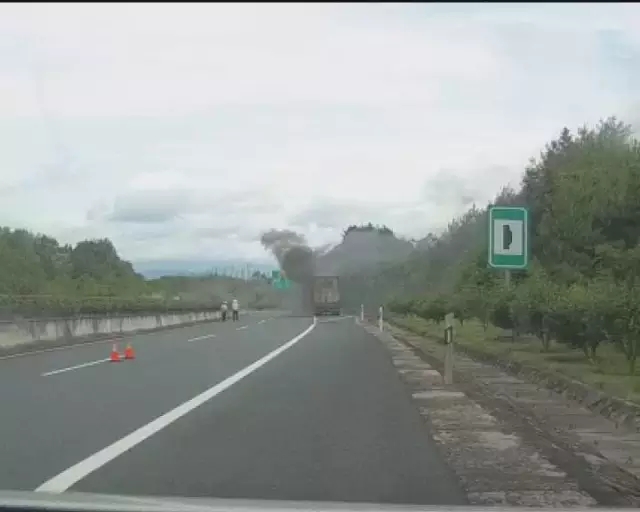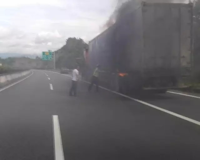 直擊現(xiàn)場:剎車片過熱起火 貨車高速上自燃