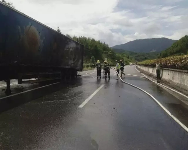 6月29日9時10分許,龍巖高速交警支隊五大隊民警接連城指揮中心報警稱:長深高速三明往龍巖方向連城段有一輛貨車自燃。接警后,五大隊民警立即趕往現(xiàn)場,并在第一時間聯(lián)系消防人員。