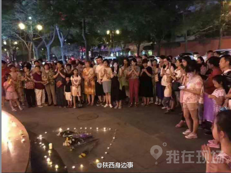 7月5日晚,部分業(yè)主在小區(qū)門口擺上蠟燭悼念逝者。圖據@陜西身邊事。