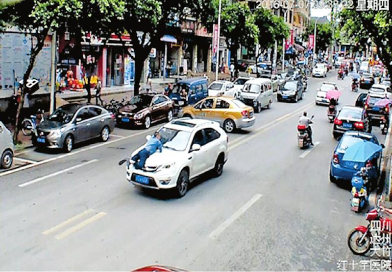 一輛白色的比亞迪轎車,載著一車乘客在市區(qū)橫沖直撞,并以時速50公里左右的速度,將一名執(zhí)法人員撞上引擎蓋,推行了300多米。緊接著,該轎車來了一個急轉(zhuǎn)彎,把執(zhí)法人員甩下地面后繼續(xù)逃跑……7月7日,電影中的“速度與激情”,在達州市大竹縣城真實上演。