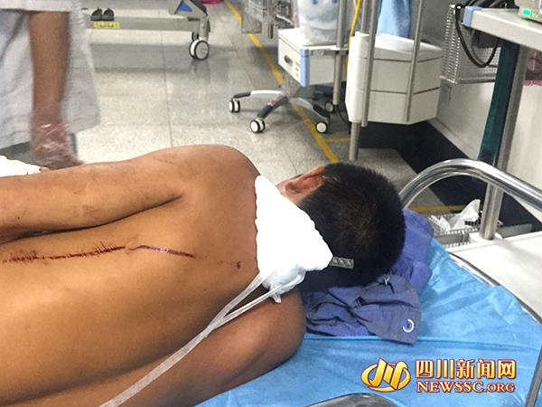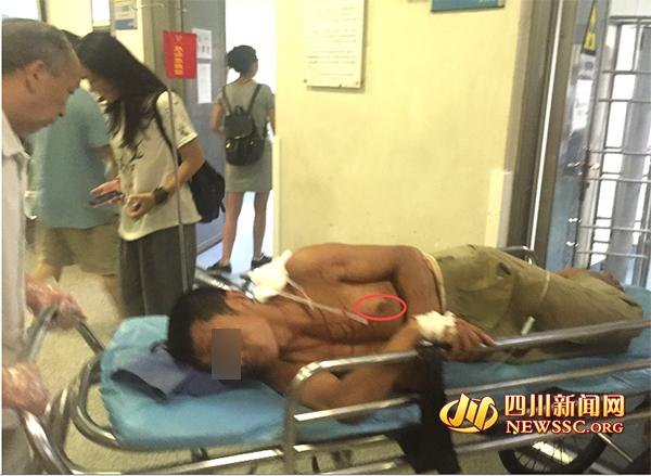 今日中午11點(diǎn)過(guò),四川新聞網(wǎng)記者趕到省醫(yī)院急診科看到,都師傅剛從CT室做完檢查,在他的左肩胛部仍能看到一小截鋼筋,在他的正面前胸處可以看到鋼筋的另一頭,但沒(méi)有刺穿。他側(cè)臥在病床上,睜著眼睛,沒(méi)有說(shuō)話。