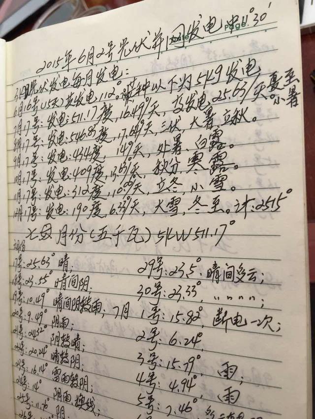 陳佛山向記者展示他每天記錄的自家安裝的光伏發(fā)電情況