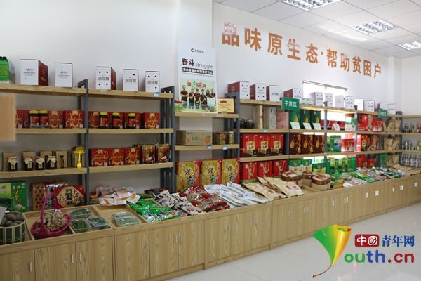 在興國縣鳳凰村服務(wù)站點(diǎn),貨柜上擺滿了興國縣地方特色產(chǎn)品。中國青年網(wǎng)記者 李川 攝