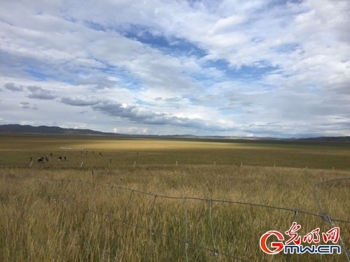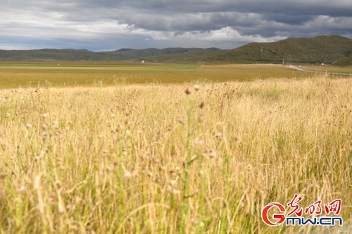 光明網(wǎng)訊(記者 張紫璇)“綠原無(wú)垠漫風(fēng)煙,蓬高沒(méi)膝步泥潭。”當(dāng)年紅軍長(zhǎng)征穿過(guò)的草地就位于今天四川省阿壩州紅原縣瓦切鎮(zhèn)北部日干喬大沼澤。草地其實(shí)是高原濕地,平均海拔3500余米,為泥質(zhì)沼澤。過(guò)去這里遍布泥潭,當(dāng)?shù)啬撩穹硼B(yǎng)的牦牛如果不慎在日干喬走失,就連經(jīng)驗(yàn)豐富的老牧人也不敢冒然進(jìn)去尋找。而這片面積約250萬(wàn)畝的陸地上的“死亡之!保瑓s是紅二、紅四方面軍左路縱隊(duì)穿越草地北上的必經(jīng)之路。9月14日,“長(zhǎng)征路上奔小康”網(wǎng)絡(luò)媒體一行來(lái)到這里,盡管剛剛?cè)肭锊痪茫驹诿鞜o(wú)人煙的茫茫草地之間,已感到濃烈的寒意。