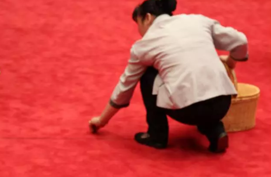 杭州國際博覽中心紅地毯上,一個小男孩蹲下就開始“噓噓”