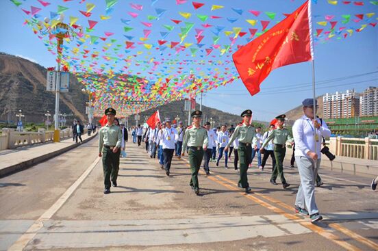 甘肅站采訪團(tuán)通過會(huì)寧會(huì)師大橋