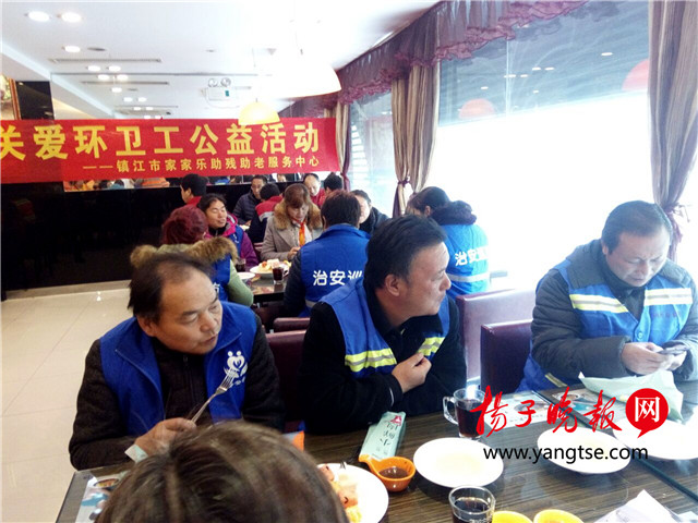 揚(yáng)子晚報(bào)網(wǎng)11月25日訊(通訊員 施澎 戴勇 記者 萬凌云) 時(shí)近年末天寒地凍,然而社會(huì)各界人士關(guān)愛環(huán)衛(wèi)工人的熱情卻一波波來襲。25日中午,在鎮(zhèn)江市區(qū)夢溪路一餐廳內(nèi),鎮(zhèn)江50名環(huán)衛(wèi)工人齊聚一堂,“嘗鮮”吃牛排。這次溫暖、關(guān)愛環(huán)衛(wèi)工公益活動(dòng),是由鎮(zhèn)江公益組織“家家樂助殘助老服務(wù)中心”和這家餐廳聯(lián)合發(fā)起的。而與以往社會(huì)給環(huán)衛(wèi)工人發(fā)“愛心福利”的方式不同,這次前來就餐的環(huán)衛(wèi)工中,大多數(shù)都由愛心人士走到作業(yè)地段上,現(xiàn)場邀請召集而來的。由此,面對(duì)天上掉下來的“牛排”,邀請人還被當(dāng)成了“騙子”。