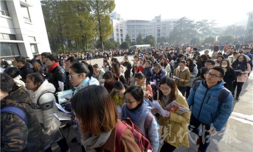 再看江蘇考區(qū),64124 人趕考,比去年增加 7645 人。如此競爭比例,有一些考生沒繳費確認,等到筆試,又有一些人當了 " 逃兵 "。據(jù)省人事考試中心統(tǒng)計,昨天參考率逾 85%,與往年差不多。