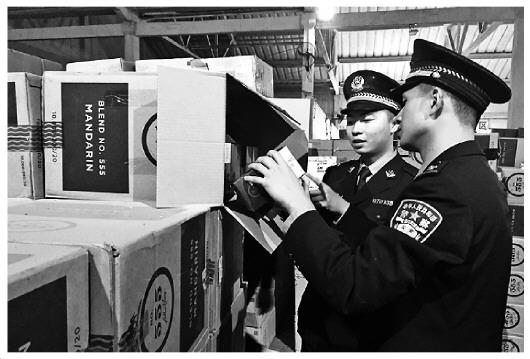 圖為湛江海關緝私警正在清點收繳的走私香煙!