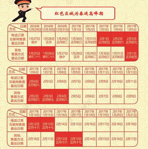 春運迎來返程購票高峰期。自今日起,通過網絡和電話就可以購買春節(jié)假期最后一天,也就是正月初六(2017年2月2日)的火車票了。需要注意的是,多地鐵路局臨時加開部分旅客列車,沒有搶到火車票的旅客可以關注下臨客。