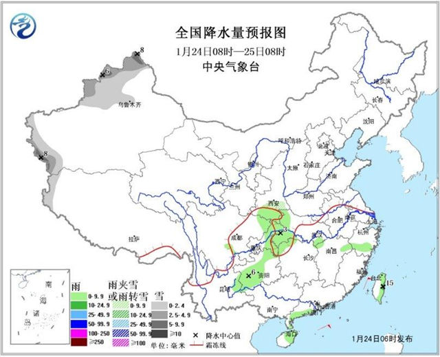 24日08時(shí)至25日08時(shí),新疆北部與西南部的部分地區(qū)有小到中雪,局地大雪;陜西南部、四川盆地西南部和東北部、重慶中東部、湖北西部、貴州中西部、海南島、臺(tái)灣等地的部分地區(qū)有小雨或陣雨,局地中雨。臺(tái)灣海峽、南海東北部和中東部偏北海域有7~8級(jí)、陣風(fēng)9~10級(jí)的東北風(fēng)。
