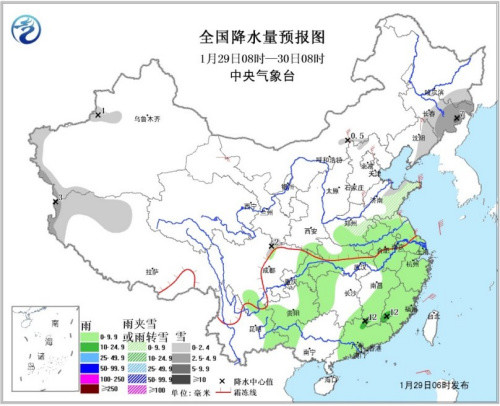 初二(29日),東北地區(qū)中南部、黃淮北部等地有小到中雪或雨夾雪,局地大雪;江淮、江漢、江南西部和東部、西南地區(qū)東部、華南中東部等地有小雨或陣雨。