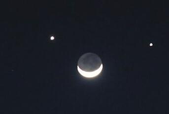 據(jù)了解,“雙星伴月”天象雖然常見,但能趕上月亮為娥眉月,又呈“咧嘴”狀的時候并不多。