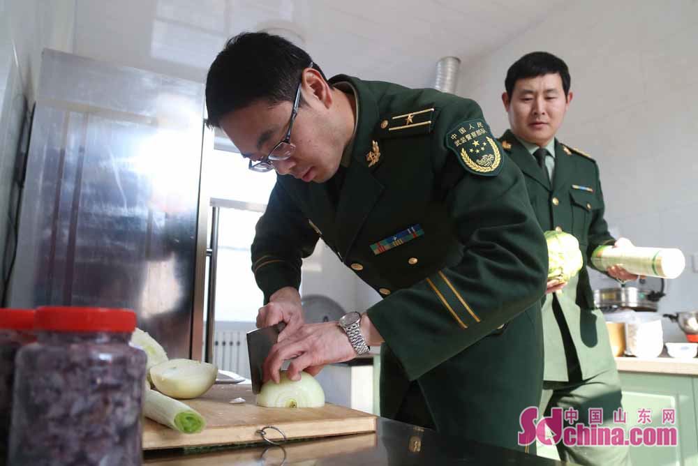 • 鄭偉強(qiáng)在做飯,守島生活練就了他的好廚藝。