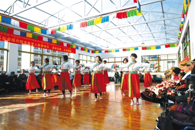 圖為駐藏某部官兵在為巴宜區(qū)五保集中供養(yǎng)中心孤寡老人表演節(jié)目。