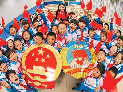 河北秦皇島先盛里小學(xué)開展“兩會知識知多少”主題班會。曹建雄攝(人民視覺)