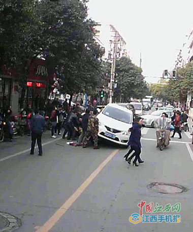 3月21日上午9時許,消防員驅(qū)車在轄區(qū)內(nèi)巡邏執(zhí)勤。在經(jīng)過永叔路的系馬樁路口時,一名步行的老人被一輛轉(zhuǎn)彎的疾行小車撞倒后,又被卷入了車底。