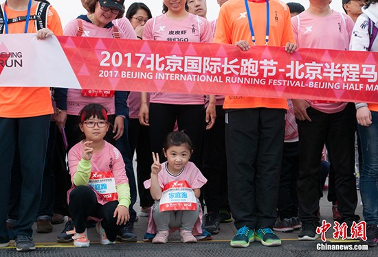 中新網(wǎng)北京4月16日電(岳川) 2017北京國際長跑節(jié)暨北京半程馬拉松(“北京跑”)于16日早晨鳴槍起跑,約兩萬名跑者參賽其中。