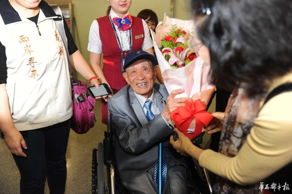 4月19日晚9點(diǎn),成都雙流國(guó)際機(jī)場(chǎng),一架從寶島臺(tái)灣飛來的飛機(jī),穩(wěn)穩(wěn)降落在四川的土地上,胡定遠(yuǎn)蹣跚著從機(jī)艙走出,眼前的景象令這位老人眼眶濕潤(rùn),“我回家了。”