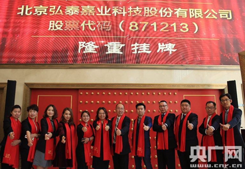 央廣網(wǎng)北京4月27日消息(記者 于聞)4月27日,北京弘泰嘉業(yè)科技股份有限公司在北京市金融大街全國中小企業(yè)股份轉(zhuǎn)讓系統(tǒng)中心隆重舉行新三板掛牌敲鐘儀式。該公司董事長畢燃等負(fù)責(zé)人、投資方負(fù)責(zé)人以及媒體代表等出席掛牌儀式,共同見證了“遠(yuǎn)程病理服務(wù)第一股”啟航。