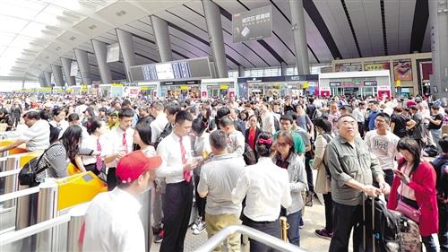 5月1日,北京南站檢票口人頭攢動。當(dāng)日是五一假期最后一天,全國各地公路、鐵路迎來返程高峰。