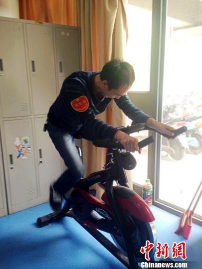 圖為一名車長通過快速騎單車釋放壓力!⊥跚锾m 攝