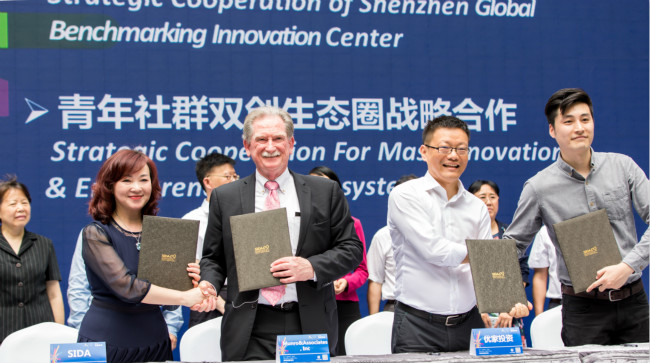啟動儀式上,深圳市工業(yè)設(shè)計行業(yè)協(xié)會與美國蒙羅聯(lián)合公司達成戰(zhàn)略合作,聯(lián)手在中芬設(shè)計園二期建立全球?qū)?biāo)中心,引進美國精益設(shè)計服務(wù)。廣州優(yōu)家投資管理有限責(zé)任公司與中芬創(chuàng)意產(chǎn)業(yè)園投資發(fā)展有限公司簽署戰(zhàn)略合作協(xié)議,共同打造青年社群雙創(chuàng)生態(tài)圈。