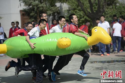 資料圖:高三學生參與趣味運動會減壓。 中新社記者 劉文華 攝