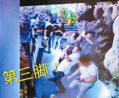 據(jù)現(xiàn)場(chǎng)監(jiān)控視頻上的信息顯示,5月29日下午1點(diǎn)56分左右,一名身著白色短袖上衣的男子在貴州松桃苗族自治縣潛龍洞景區(qū)內(nèi),看到了步道邊的一根半米左右的鐘乳石。他旁邊有幾個(gè)人在拍照,男子則試著踢了一腳這根鐘乳石,發(fā)現(xiàn)沒(méi)有變化,之后又補(bǔ)了一腳,明顯比第一腳更用力,鐘乳石依舊沒(méi)動(dòng),直到第三腳下去,鐘乳石終于被踢斷,踢斷的部分有30厘米左右。