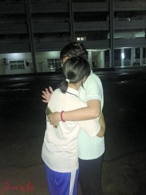 志愿者抱著紫欣安慰她。