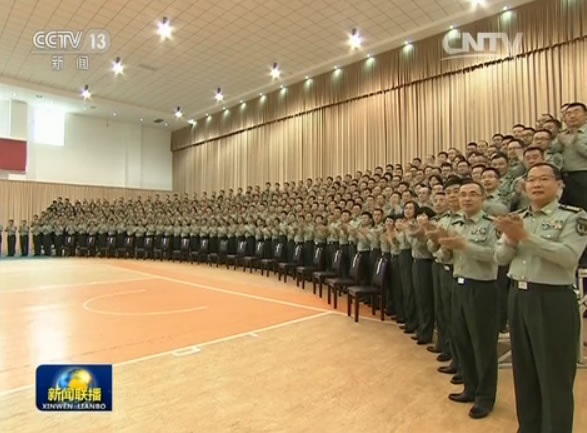 10時許,習(xí)近平前往基地文體中心,接見基地副團職以上干部,現(xiàn)場響起經(jīng)久不息的熱烈掌聲。習(xí)近平同大家親切握手、合影留念。
