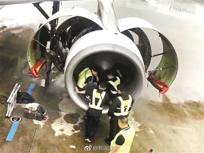 機務人員對被扔進硬幣的發(fā)動機進行緊急檢查