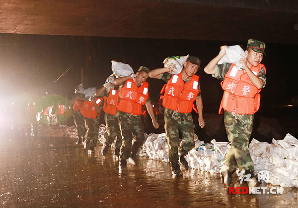 紅網(wǎng)長沙7月1日訊(通訊員 楊韜 吳建波 記者 劉怡斌)暴雨!大暴雨!特大暴雨!橙色預(yù)警!紅色預(yù)警!長沙、益陽、懷化、湘西、岳陽、邵陽等地接連告急!防汛應(yīng)急響應(yīng)提升至Ⅱ級(jí)!6月以來,全省平均降雨量已破歷史極值。自6月30日起,武警湖南省總隊(duì)近兩千名兵力兵分多路、持續(xù)作戰(zhàn),截至目前已累計(jì)轉(zhuǎn)移群眾5000余人,加固河堤近20公里,封堵管涌等險(xiǎn)情10余處。