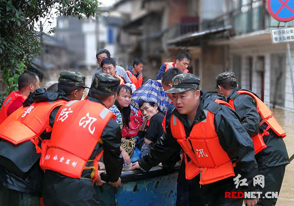 1日下午15時(shí)30分,長春垸新橋河鎮(zhèn)烈公橋段河堤又密集出現(xiàn)十二處小管涌,救災(zāi)官兵來不及洗去臉上的泥土,又投入到緊張的救援工作中,兩個(gè)小時(shí)候,十余處險(xiǎn)情全部被排除。6月30日下午18時(shí),暴雨侵襲下的湘西沅江水位持續(xù)上漲,瀘溪縣境內(nèi)浦市至武溪段全面超警。武警湘西支隊(duì)115名官兵連夜奮戰(zhàn)在一線,全力抗擊洪峰。在武溪鎮(zhèn)五里洲村,截至目前,該支隊(duì)共疏散、轉(zhuǎn)移群眾1000余人,排查化解各類安全隱患6起,裝填沙袋2000多袋,打好木樁500余個(gè),幫助轉(zhuǎn)移財(cái)產(chǎn)物資50余萬元。1日凌晨5時(shí),洪水漫灌懷化辰溪縣城,城區(qū)到處一片汪洋,全域進(jìn)入防汛1級(jí)應(yīng)急響應(yīng)。懷化支隊(duì)50余名救援官兵迅速馳援,利用自帶皮劃艇和征用民用木船等手段,深入老城區(qū)中心轉(zhuǎn)移受困群眾800余人。救援中,一名高燒兩天多的4歲女孩被困3樓家中,該支隊(duì)參謀長王良華帶一艘皮劃艇避開縱橫交錯(cuò)的架空電線,成功將其轉(zhuǎn)移至附近醫(yī)院。