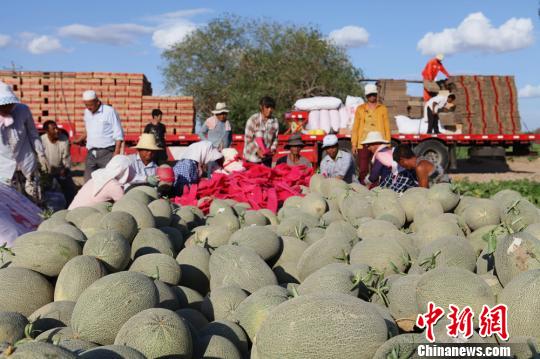 哈密市產(chǎn)哈密瓜每年從6月底開始采摘一直持續(xù)至9月!≈戾\慧 攝