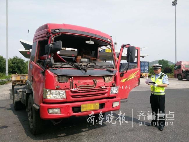 不一會兒,民警便發(fā)現(xiàn)這輛非同尋常的貨車,并將其引導(dǎo)下收費(fèi)站接受檢查。一看,這輛車問題還真不少,除了沒有前擋風(fēng)玻璃,車頭前部保險杠和大燈都被撞的不成樣子。原來該車在濰坊某地遇追尾事故,因事故案發(fā)地人生地不熟,便聯(lián)系了一家濟(jì)寧本地的汽修廠。事故處理完畢后,該車駕駛員不顧辦案民警勸阻,徑自將無擋風(fēng)玻璃的事故車開上了高速。