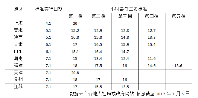 此外,安徽省于2017年2月1日開(kāi)始實(shí)施新的最低工資規(guī)定,細(xì)化最低工資標(biāo)準(zhǔn)的規(guī)則,保障勞動(dòng)者申訴、申請(qǐng)仲裁的權(quán)利。而四川省、廣東省日前已明確都表示,2017年最低工資標(biāo)準(zhǔn)暫不上調(diào),將按照以往發(fā)布的標(biāo)準(zhǔn)執(zhí)行。