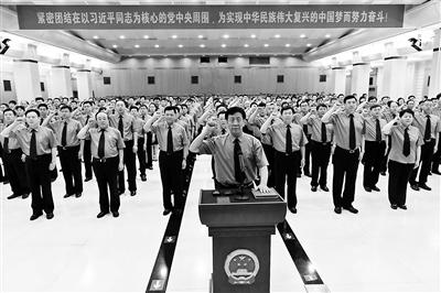 最高檢檢察長曹建明率領(lǐng)228名首批入額檢察官舉行憲法宣誓活動 供圖/最高檢