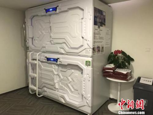 資料圖:共享睡眠艙門外形科技感十足,酷似宇宙太空艙。 王子濤 攝
