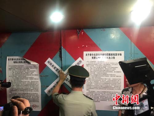 7月30日晚,北京眾合動(dòng)物園服裝批發(fā)市場(chǎng)被關(guān)停。潘心怡 攝