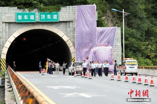 8月10日晚23時許,一輛牌號為豫C88858號的客車自成都駛往洛陽,途經(jīng)京昆高速公路安康段秦嶺一號隧道南口,撞向隧道口發(fā)生交通事故。張遠 攝